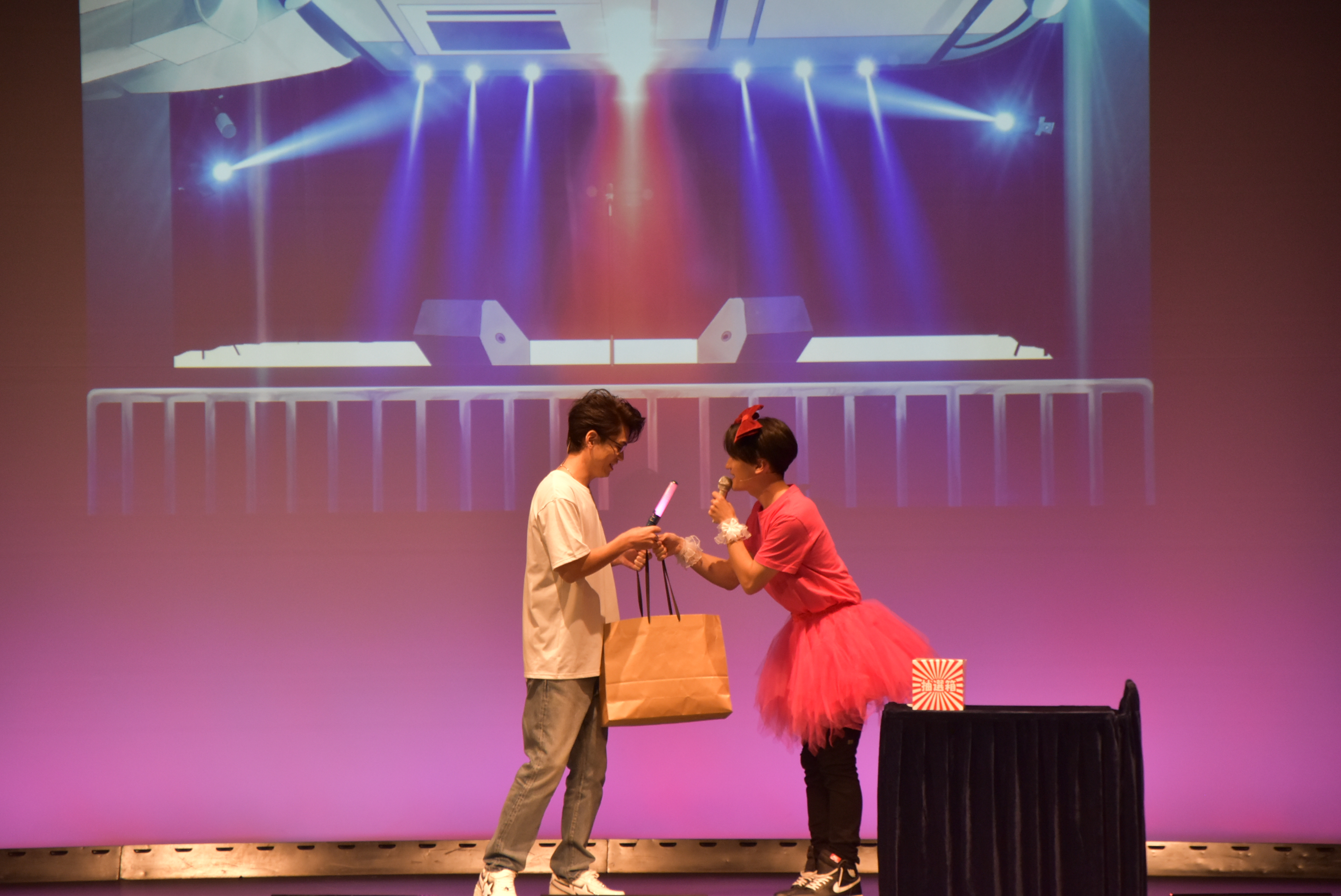 ファンの名前を読みあげながら感謝を告げる百合子に対し、「その人たち誰も来てないから!“百合子のラストライブ絶対行くマン”って名前つけて今日来てないってどういうこと?」と鋭いツッコミを入れる喜多見。再演ネタとはいえ、これには会場も瞬く間にヒートアップ。続くプレゼントコーナーでは、サイン色紙や私物のパジャマを抽選でプレゼントする企画だが、参加者が一人しかいないため全て喜多見が当選することに。「抽選番号1番の方~」と何度も呼ばれる中、仕方なく手を挙げる喜多見の姿が笑いを誘った。