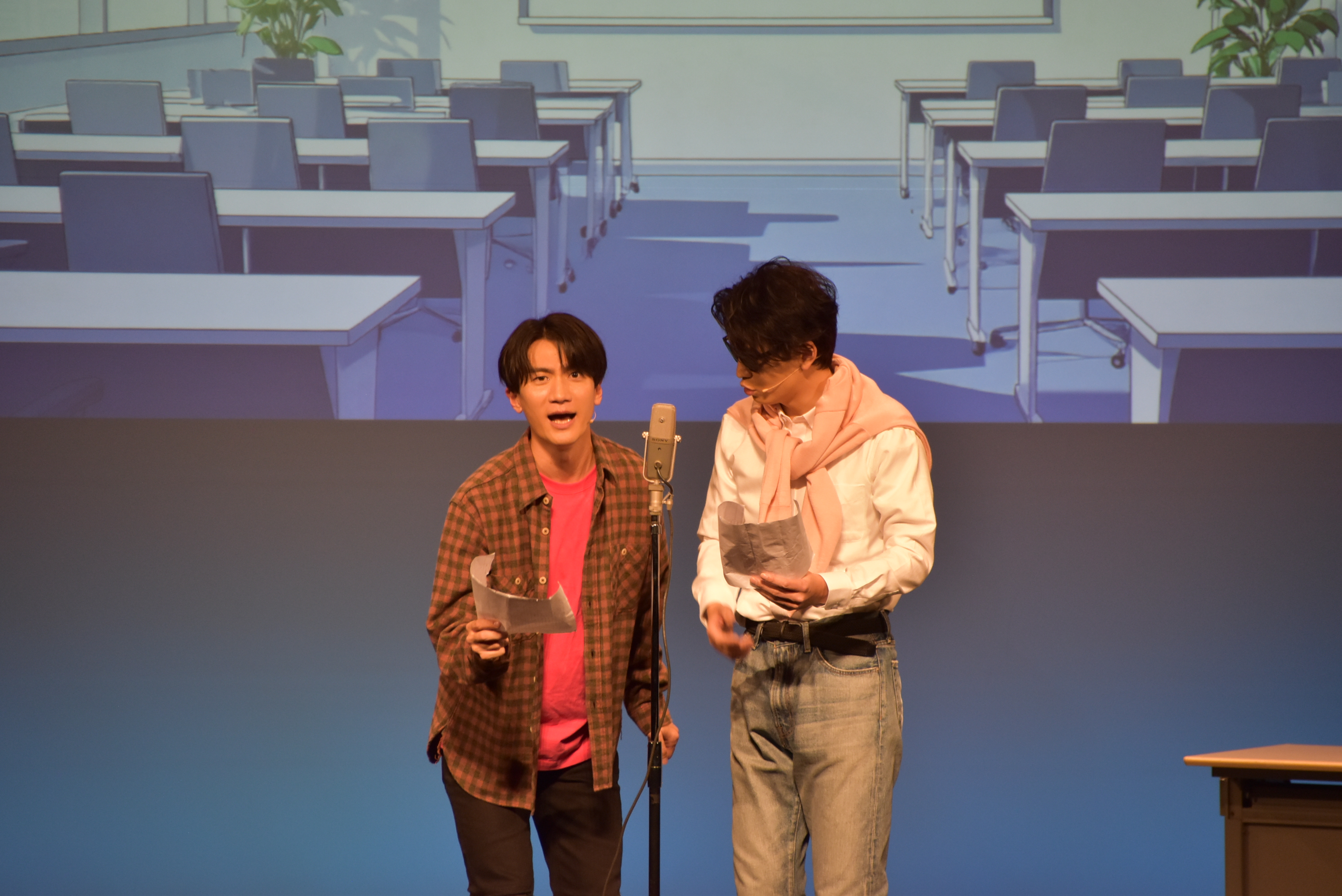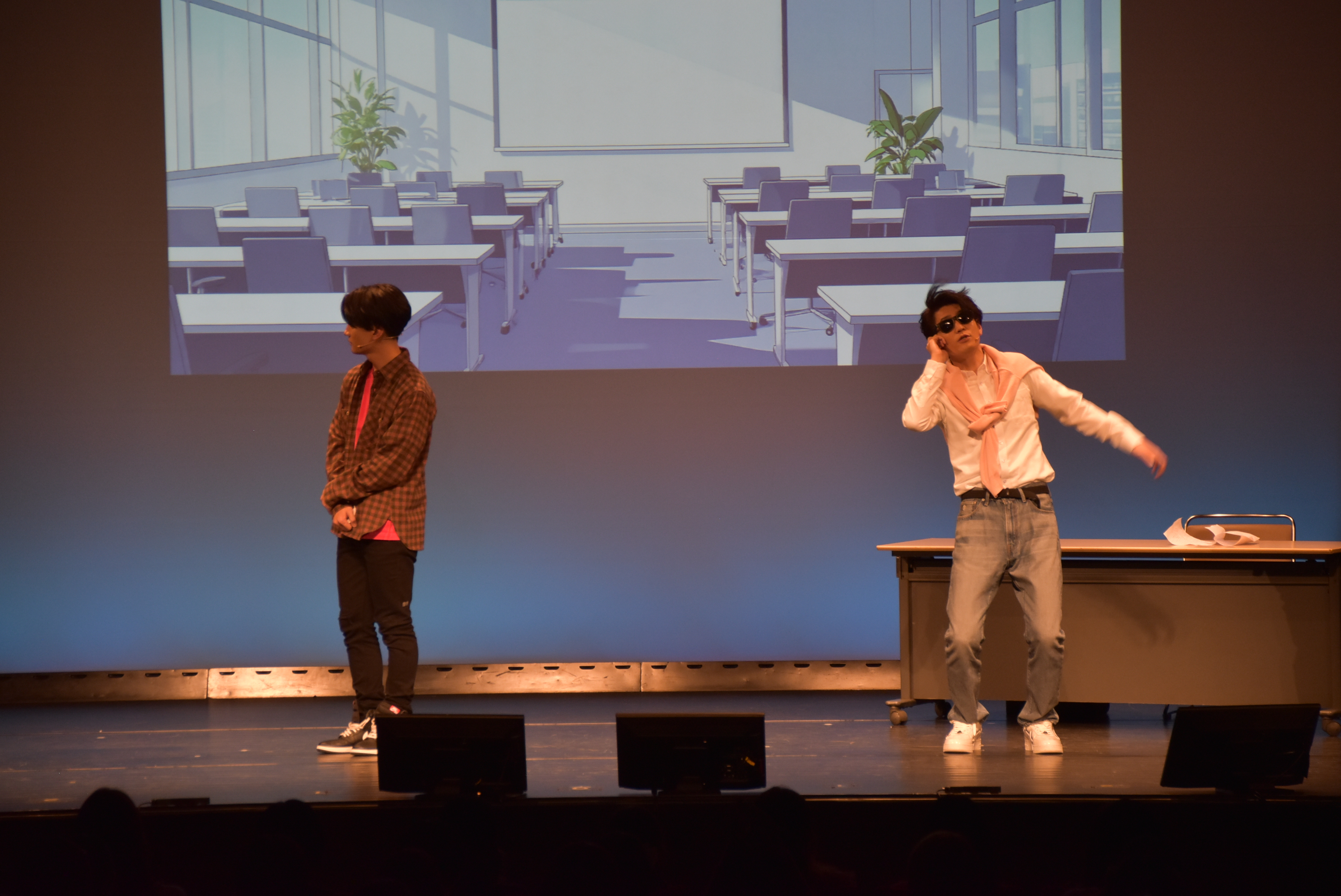 天﨑から自分は声優だと教えられた梶原は、作品タイトルや役名をヒントにした連想ゲームに挑戦。無意識に出てしまう“マイクワーク”やイケボなど、体が覚えているプロの技が、観客を驚かせつつ同時に爆笑をさらっていく。終盤、天﨑の「ツッコんでみてよ」という振りをきっかけに、梶原がついに記憶を取り戻すか?!に思われたが、ラストの「僕は、新世界の神となる」という決め台詞に対し、天﨑が「自分のこと宮野真守やと思ってるー」とのけぞり、見事なオチで締めくくった。
